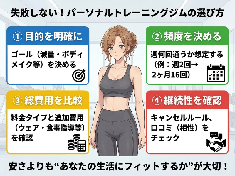 東京でパーソナルジムを選ぶときに大切なのは、「一番安いところ」を探すことではありません。